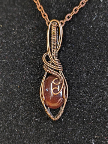 Handgemaakte ketting met een prachtige carneool in koper. De hanger is 49 x 14 mm.