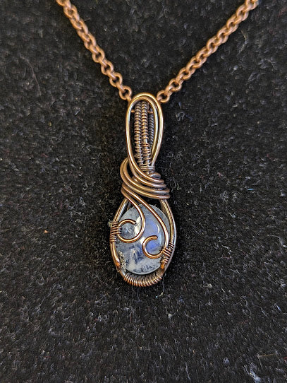 Handgemaakte ketting met een prachtige regenboog maansteen in koper. De hanger is 35 x 11 mm.